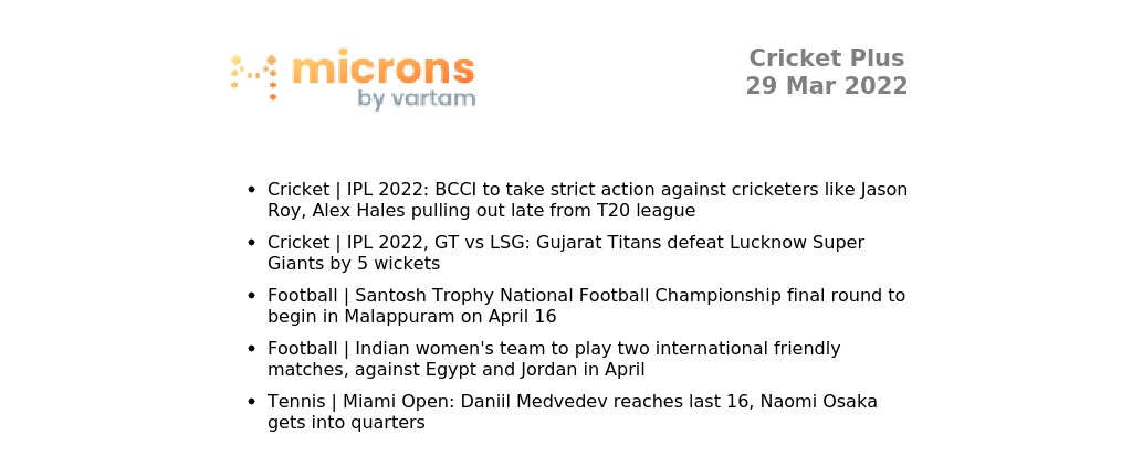 The latest news and scores, once daily